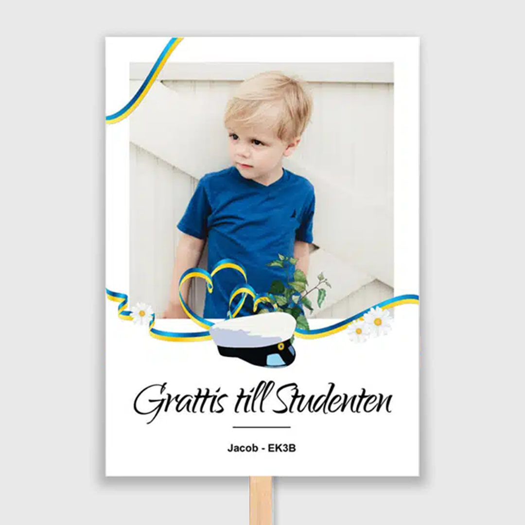Beställ ditt studentplakatmall och ta fram ditt studentplakat via mobil eller dator. Vi har över 70 olika mallar att välja bland och vi erbjuder både klassiska studentskyltar och studentplakat som är framtagna just för Studenten 2025.